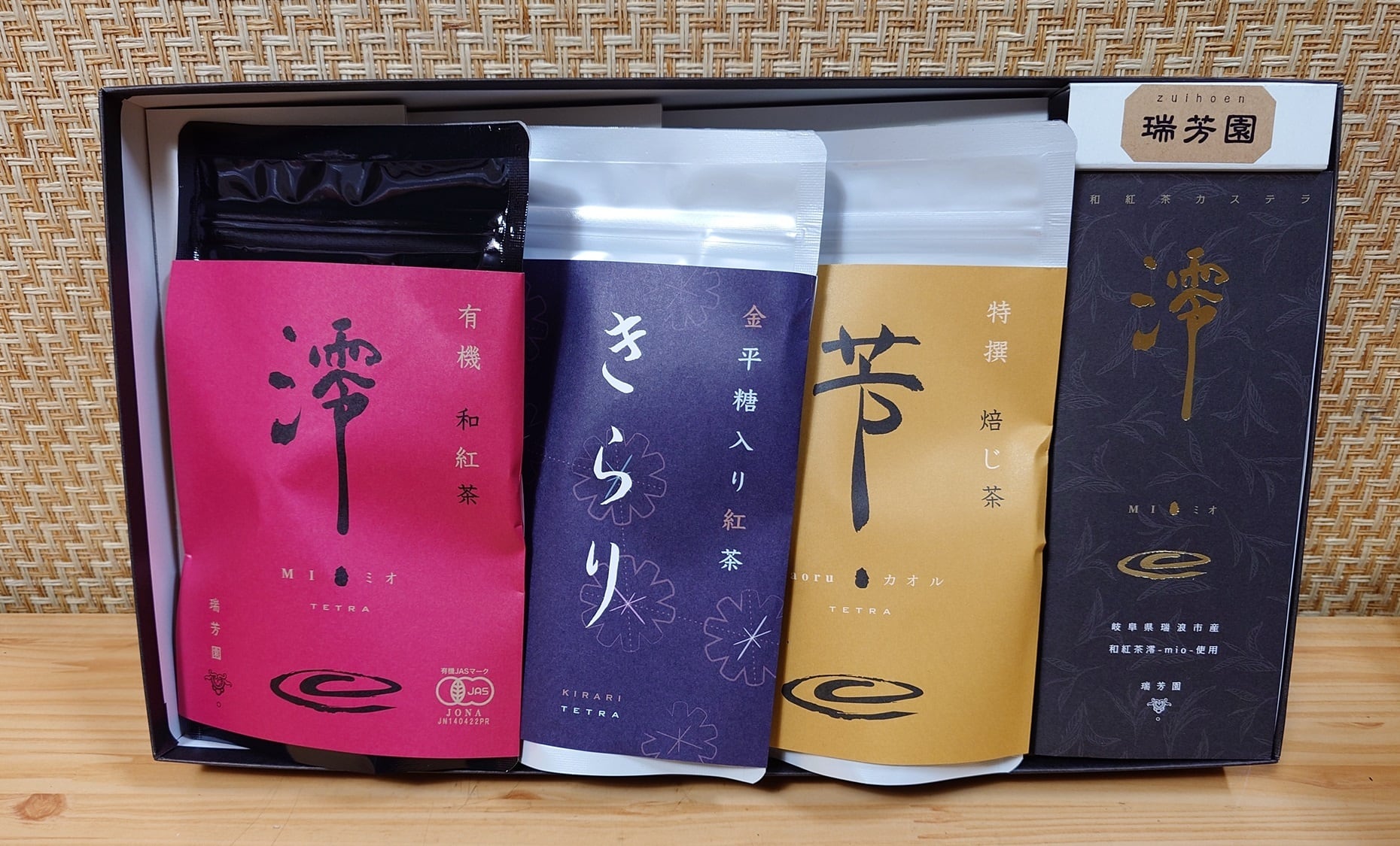 ギフトセット「澪・きらり・ほうじ茶ティーバッグ芳・和紅茶カステラ」